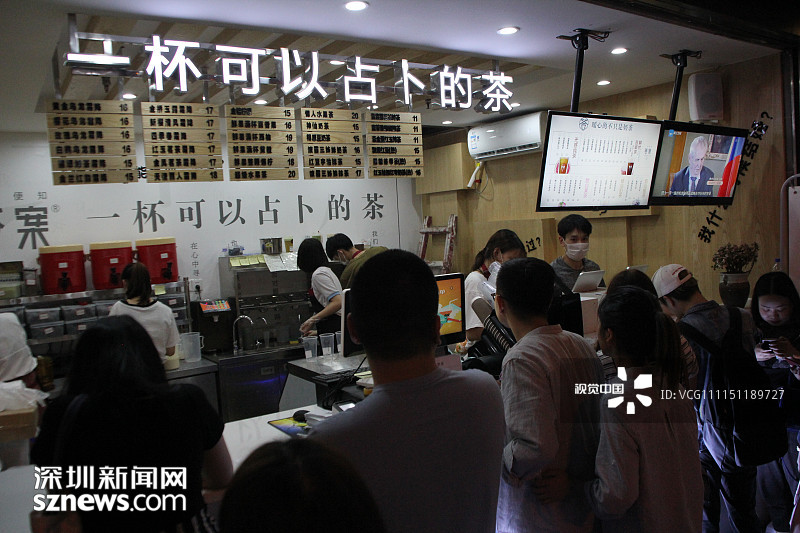 2018年4月21日,重慶,萬達廣場附近有一家新開業(yè)的網(wǎng)紅答案茶的冷飲店,這家答案茶冷飲店人氣異常火爆,門前已排起了兩條“長龍”。