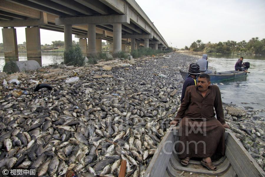伊拉克河流一夜之間漂浮數萬死魚 密密麻麻擠滿河道