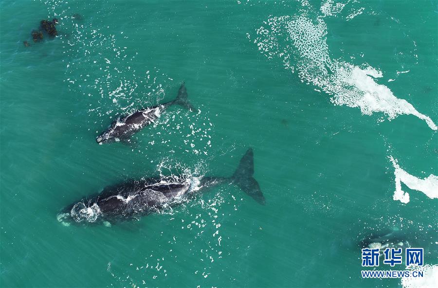 9月30日,在南非赫曼紐斯小鎮(zhèn)附近海面上,南露脊鯨在海岸邊暢游。9月29日,位于開普敦以東約115公里的赫曼紐斯小鎮(zhèn)迎來2018年的鯨魚節(jié),來自世界各地的游客可乘船出海觀鯨,也可在岸邊等待鯨魚的到來。新華社記者陳誠(chéng)攝
