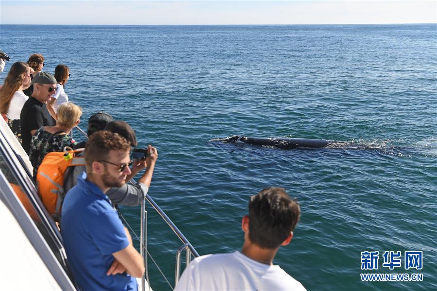 9月30日,在南非赫曼紐斯小鎮,游客乘船出海近距離欣賞南露脊鯨。9月29日,位于開普敦以東約115公里的赫曼紐斯小鎮迎來2018年的鯨魚節,來自世界各地的游客可乘船出海觀鯨,也可在岸邊等待鯨魚的到來。新華社記者陳誠攝