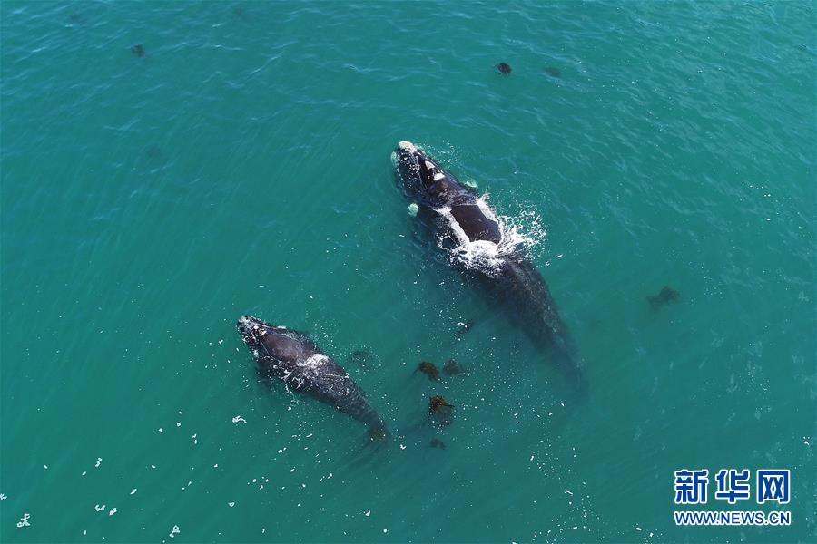 9月30日,在南非赫曼紐斯小鎮附近海面上,南露脊鯨在海岸邊暢游。9月29日,位于開普敦以東約115公里的赫曼紐斯小鎮迎來2018年的鯨魚節,來自世界各地的游客可乘船出海觀鯨,也可在岸邊等待鯨魚的到來。新華社記者陳誠攝