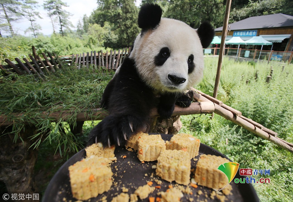 2016年9月10日,重慶,中秋節即將來臨,飼養員們給一些動物也發放了“月餅”,根據不同的動物選擇不同的食材。