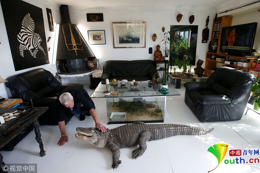Philippe Gillet將短吻鱷從小養大,在家里允許它們肆意走動,就如同我們的家養貓貓狗狗一樣。