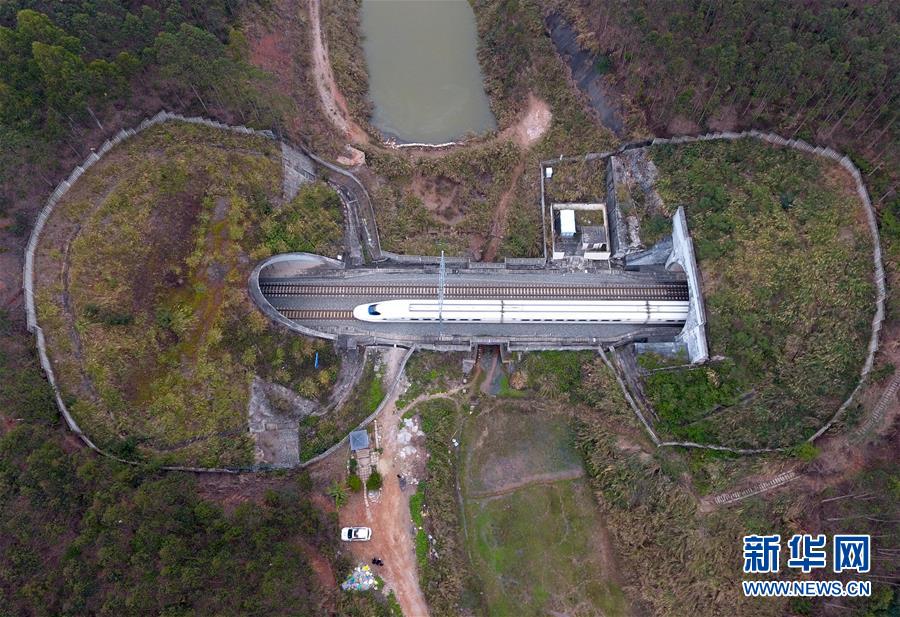 一列動車穿越南寧郊區(qū)一處隧道(2月11日無人機拍攝)。 廣西壯族自治區(qū)成立60年來,鐵路建設(shè)發(fā)生翻天覆地的變化。來自中國鐵路南寧局集團(tuán)有限公司的數(shù)據(jù)顯示,1958年廣西鐵路總里程為1346.3公里,如今廣西鐵路總里程達(dá)5191公里。廣西與周邊相鄰省份間實現(xiàn)動車“公交化”開行。此外,北部灣港—重慶班列、東盟海產(chǎn)品冷鏈班列、“百色一號”果蔬專列等的開通和運營,強化了鐵路供給的針對性和有效性。鐵路成為助推廣西經(jīng)濟(jì)社會快速發(fā)展的“大動脈”。 新華社記者陸波岸攝