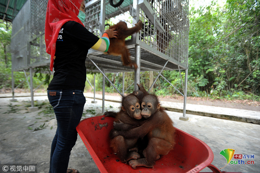 猩猩寶寶將在學校里學會爬、玩和保護自己,最后它們會被放歸自然棲息地。圖片作者:Newscom