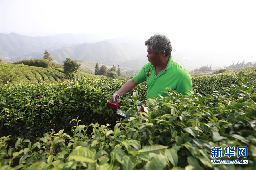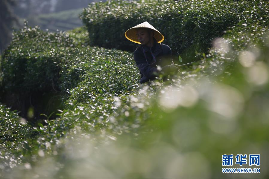 11月22日,在廣西柳州三江侗族自治縣八江鎮布央村,村民吳正光在修剪茶樹。新華社記者任正來攝