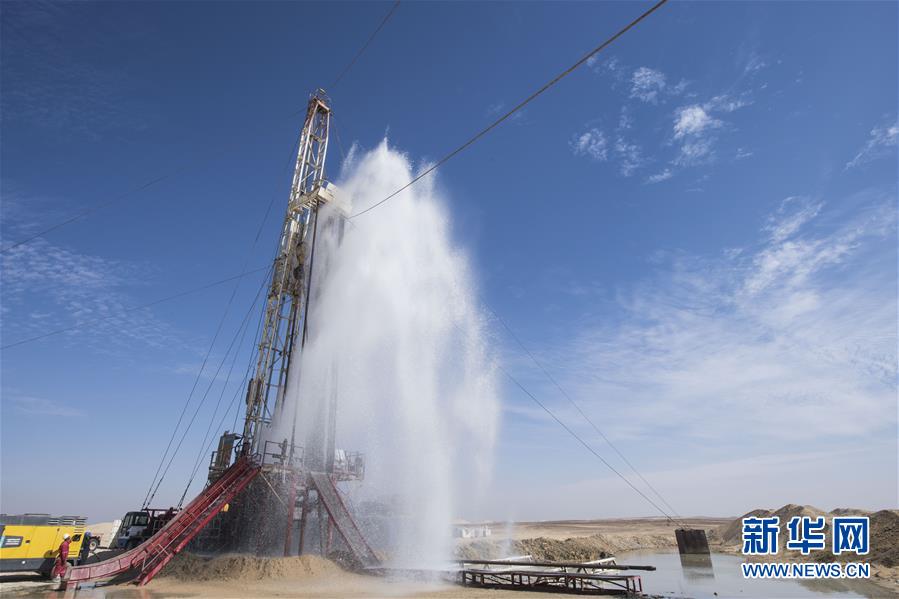 11月21日,在埃及明亞省,地下水從水管里噴涌而出。 2017年,中國中曼石油公司與阿聯酋海灣集團簽訂合同,為該集團在埃及沙漠中的大型農業項目鉆探300口水井。根據合同,中曼石油將先期完成30口井的試鉆探,剩余水井將以每月7口的速度交付。目前有超過200名工人在鉆井現場作業,大部分是埃及本地人。 新華社記者李碧念攝
