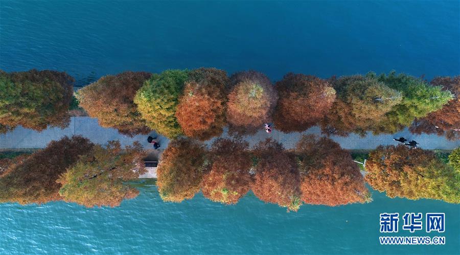 游客行走在湖南烈士公園年嘉湖的游道上(11月25日無人機拍攝)。新華社記者 李尕攝