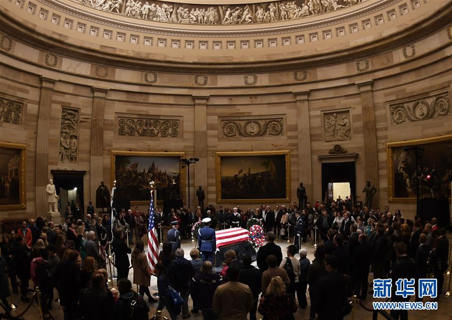 12月3日,在美國首都華盛頓,人們悼念美國前總統喬治·赫伯特·沃克·布什(老布什)。