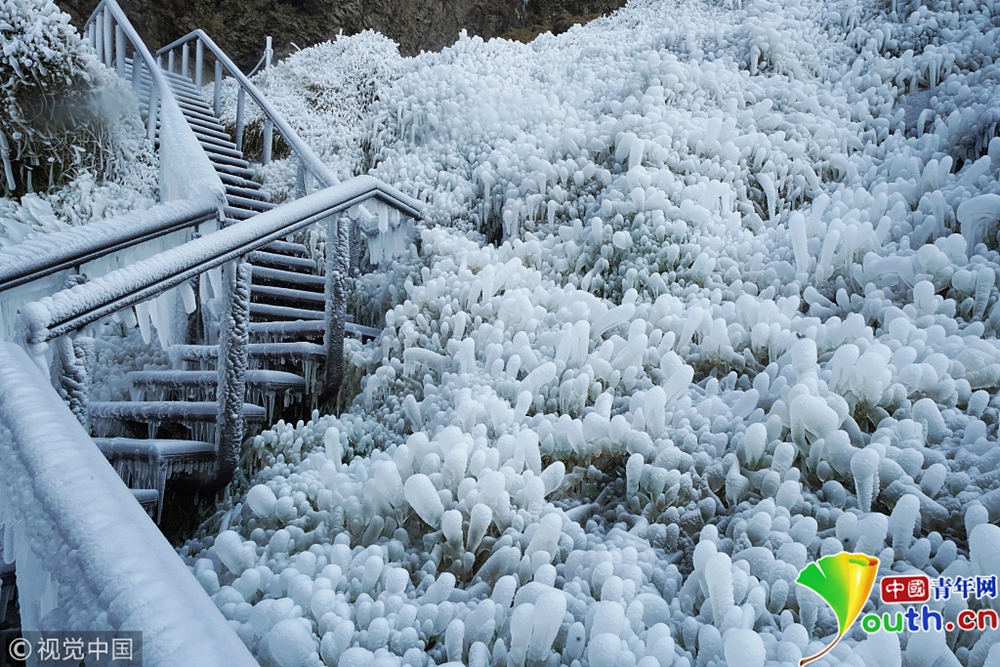 近日,冰島的塞里雅蘭瀑布在零下12攝氏度的氣溫下結冰,畫面彷如天外仙境。圖片來源:視覺中國