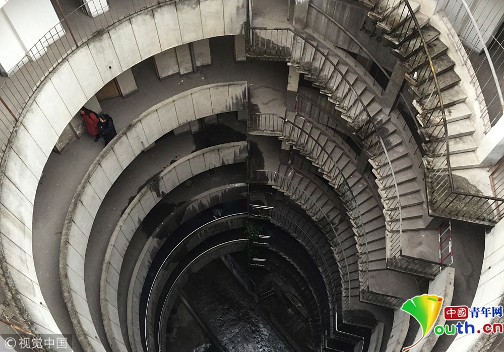 魔幻重慶再添新景觀 公交車穿8層空心圓筒樓