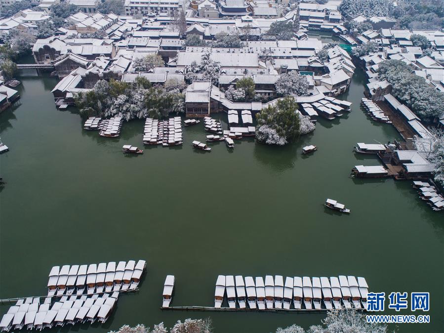 12月9日,被白雪覆蓋的烏鎮景區。 受冷空氣影響,浙江省桐鄉市迎來大范圍降雪,千年古鎮烏鎮被厚厚的白雪覆蓋。小橋流水、白墻黑瓦的江南水鄉古鎮,呈現出冬日雪鄉的獨特韻味,吸引各地游客前來觀賞。 新華社記者 徐昱 攝