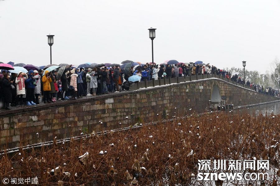 游客扎堆西湖斷橋已無“殘雪” 網友:人太多雪沒地方站