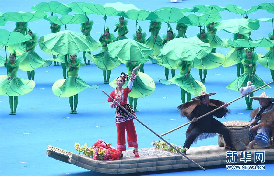 12月10日,廣西壯族自治區成立60周年慶祝大會在廣西體育中心隆重舉行。這是慶祝大會上的群眾文藝表演。 新華社記者 周華 攝