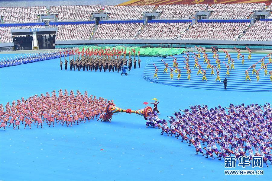12月10日,廣西壯族自治區成立60周年慶祝大會在廣西體育中心隆重舉行。這是慶祝大會上的群眾文藝表演。 新華社記者 李鑫 攝
