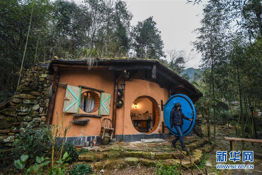 這是12月19日拍攝的民宿“僻地寒樓”的一間特色石頭屋。該民宿共有7幢風(fēng)格各異的小屋分布在山坡上,頗具特色。河橋鎮(zhèn)青年張雁辭去了上海的工作,回到家鄉(xiāng)開辦了這家民宿。 新華社記者 徐昱 攝