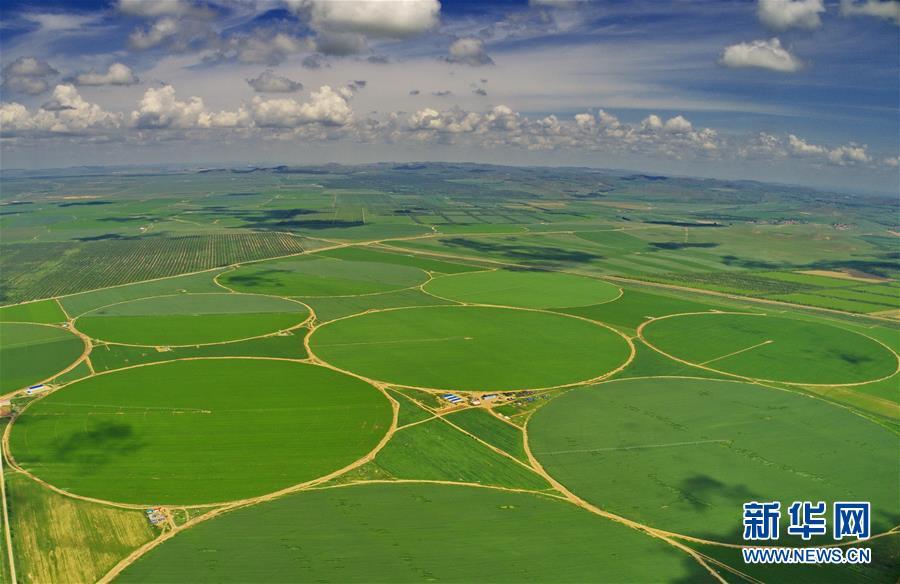 這是2018年7月25日航拍的河北省張家口市塞北管理區(qū)規(guī)模種植的農(nóng)田。 大地之色,俯仰之間;壯美山河,是我的祖國(guó)。2018年,新華社記者操縱無(wú)人機(jī)“飛閱”華夏大地,在最美的時(shí)節(jié),定格下她的色彩斑斕。 新華社記者 楊世堯 攝