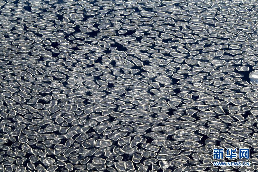 這是11月30日拍攝的普里茲灣海域的荷葉冰。 新華社記者 劉詩(shī)平 攝
