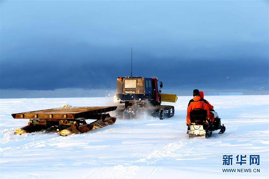 修路小組成員用雪地車裝備的鏟斗推平積雪(12月1日攝)。 搭載中國(guó)第35次南極科考隊(duì)的“雪龍”號(hào)極地考察船日前到達(dá)距離中山站44公里處的陸緣冰區(qū),準(zhǔn)備迎來(lái)本次南極科考首場(chǎng)攻堅(jiān)戰(zhàn)——物資卸運(yùn)。一支探冰小組隨即展開(kāi)海冰探路,以期盡快打通從“雪龍”號(hào)到中山站的冰上運(yùn)輸線,盡早啟動(dòng)冰上運(yùn)貨。 新華社記者 劉詩(shī)平 攝