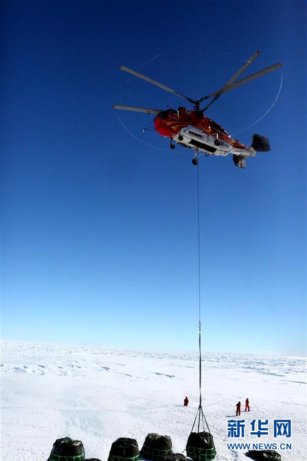 從11月30日開(kāi)始,考察隊(duì)成功將1605噸物資由“雪龍”號(hào)運(yùn)至南極中山站和內(nèi)陸考察出發(fā)基地,冰上運(yùn)輸和直升機(jī)吊運(yùn)分別為951噸和654噸。