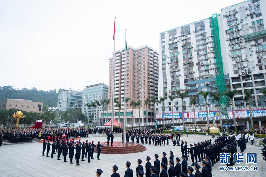 12月20日,澳門(mén)特別行政區(qū)政府在澳門(mén)金蓮花廣場(chǎng)舉行升旗儀式,慶祝澳門(mén)回歸祖國(guó)19周年。 新華社記者 張金加 攝