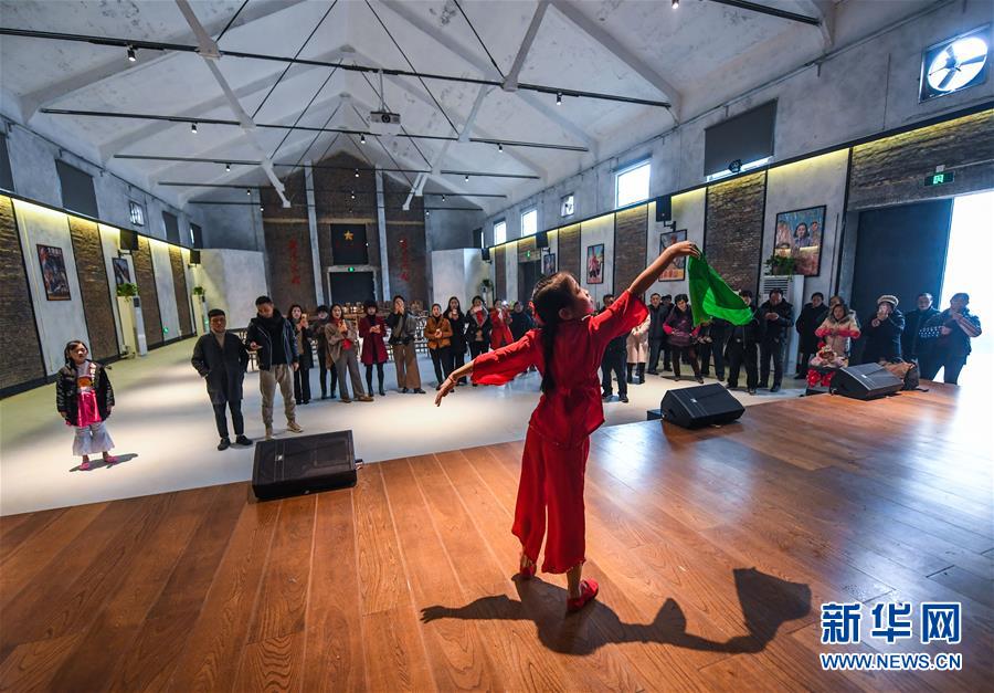 12月20日,村民們在舊糧倉改建的文體中心前排練廣場舞。 新華社記者 徐昱 攝