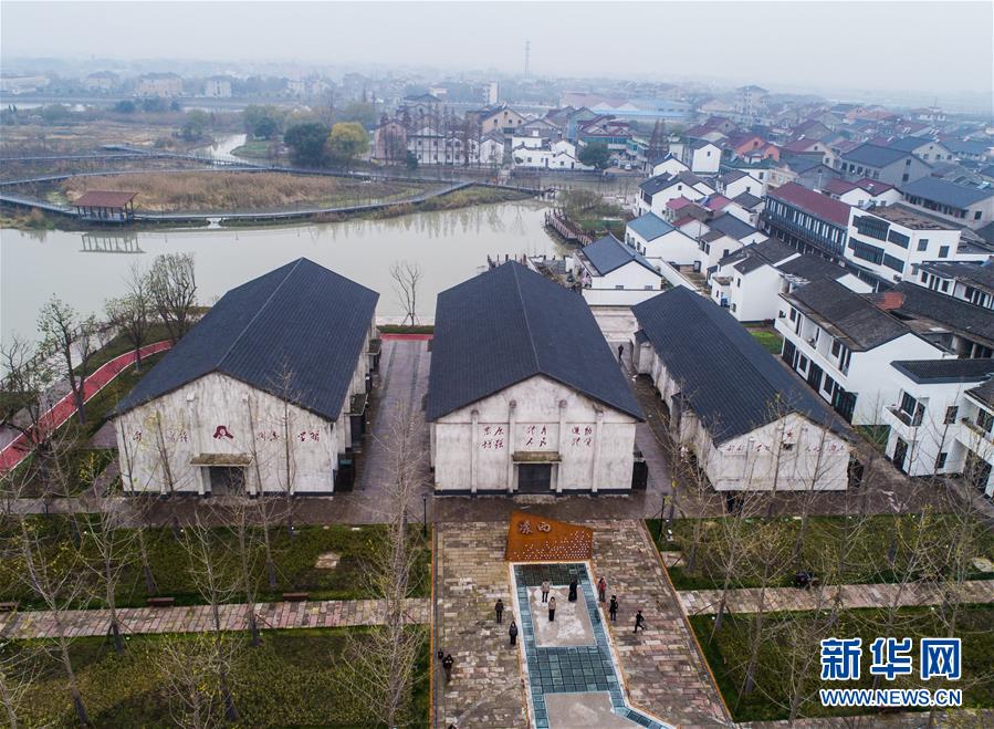 12月20日,空中俯瞰舊糧倉改建而成的鄉村文體中心(無人機拍攝)。 新華社記者 徐昱 攝