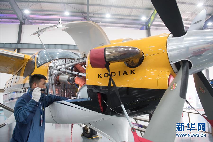12月20日,在建德市航空小鎮,工作人員對一架大棕熊100系列飛機進行日常維護。 當日,浙江省建德市航空小鎮通航制造板塊首架飛機下線交付。此次下線交付的大棕熊100系列Ⅱ飛機由美國Quest飛機制造公司出品,有望在通用航空領域發揮作用。建德市自2016年開始航空小鎮創建,2017年被列入全國第二批特色小鎮名單。 新華社記者翁忻旸攝