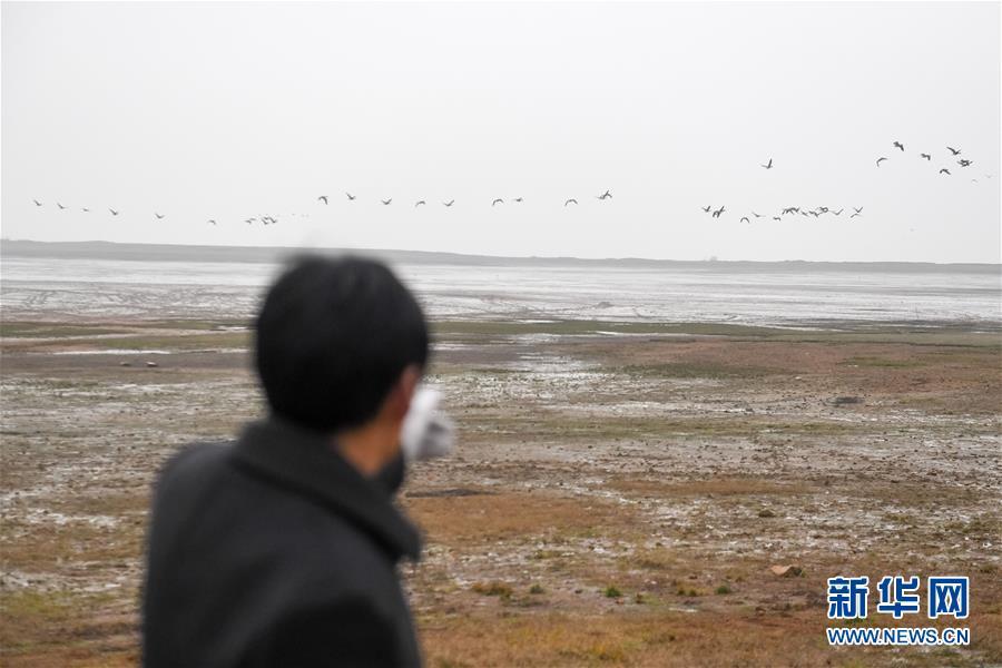 12月22日,王三益在菜子湖濕地進行越冬候鳥巡護。每年10月開始,候鳥遷徙至菜子湖,次年3月飛回北方,期間王三益會和協會成員開展越冬候鳥巡護以及清理濕地灘涂垃圾。 新華社記者 張端 攝
