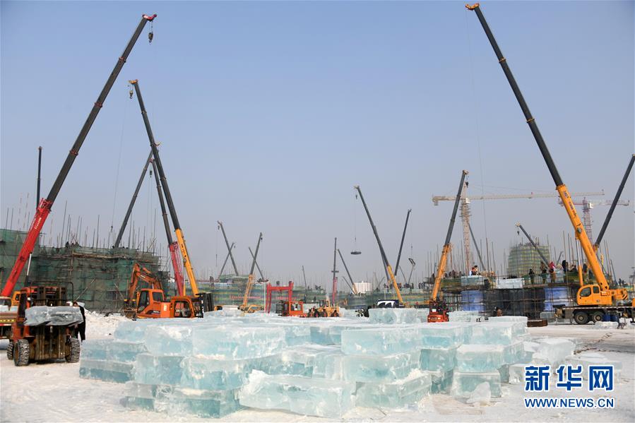 目前,以“筑夢冰天雪地,共享金山銀山”為主題的第二十屆哈爾濱冰雪大世界正在施工,現場一片繁忙景象。 新華社記者 王建威 攝