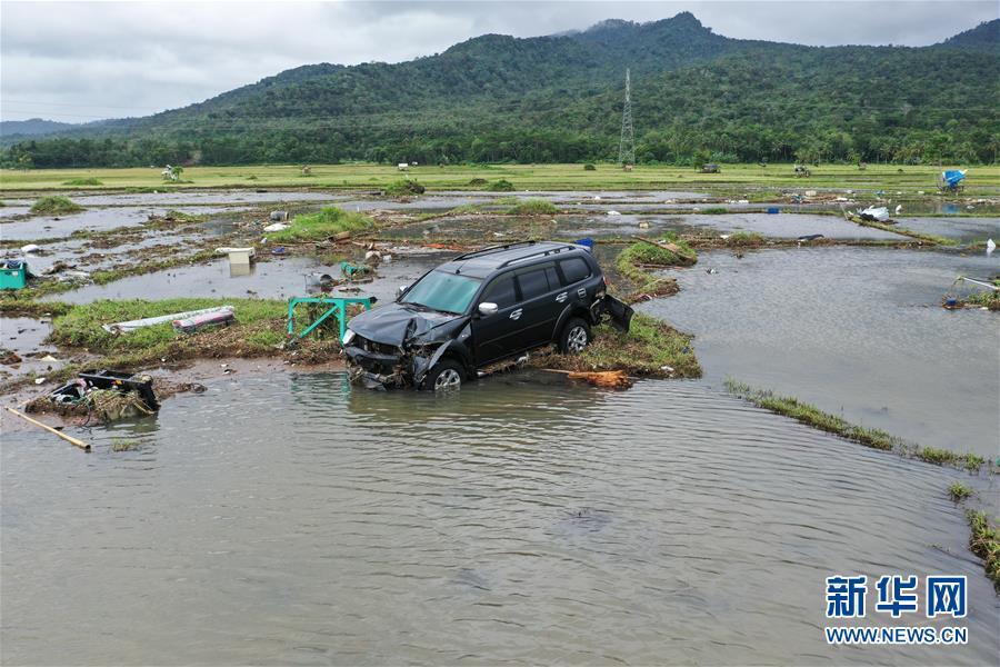 這是12月24日拍攝的印尼萬丹省一處被海嘯損毀的農田。 印度尼西亞抗災署發言人24日說,印尼西部巽他海峽海嘯死亡人數已經上升至373人。 新華社記者 杜宇 攝