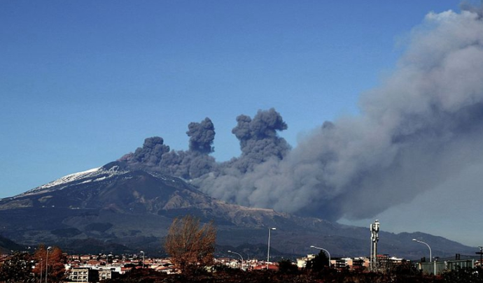 意大利埃特納火山持續(xù)噴發(fā) 黑煙滾滾 ...