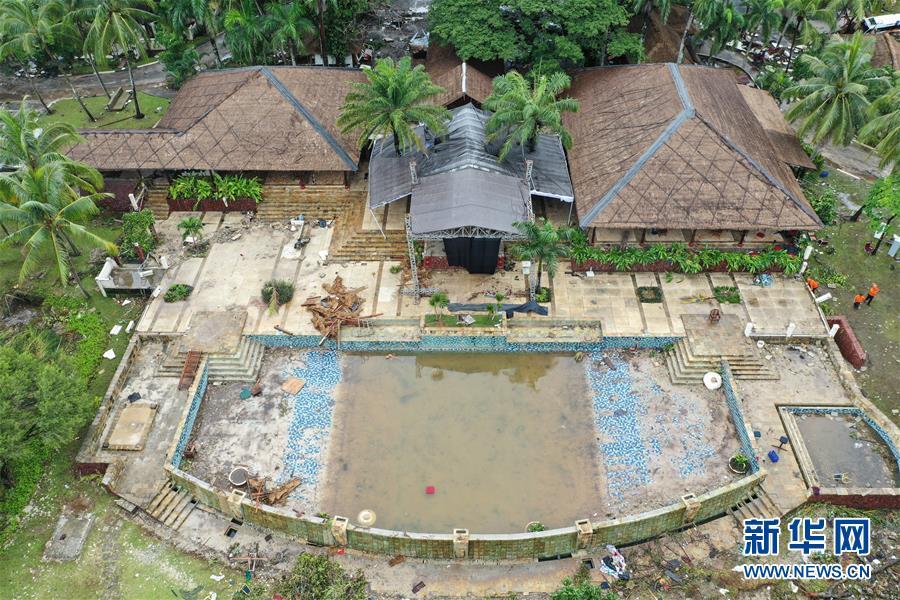 這是12月25日航拍的遭海嘯襲擊后的印度尼西亞萬丹省丹戎勒松度假村。印度尼西亞抗災署25日通報說,印尼西部巽他海峽22日晚發生的海嘯已造成429人遇難,另有超過1.6萬人撤離。搜救工作正在緊張進行。新華社記者 杜宇 攝