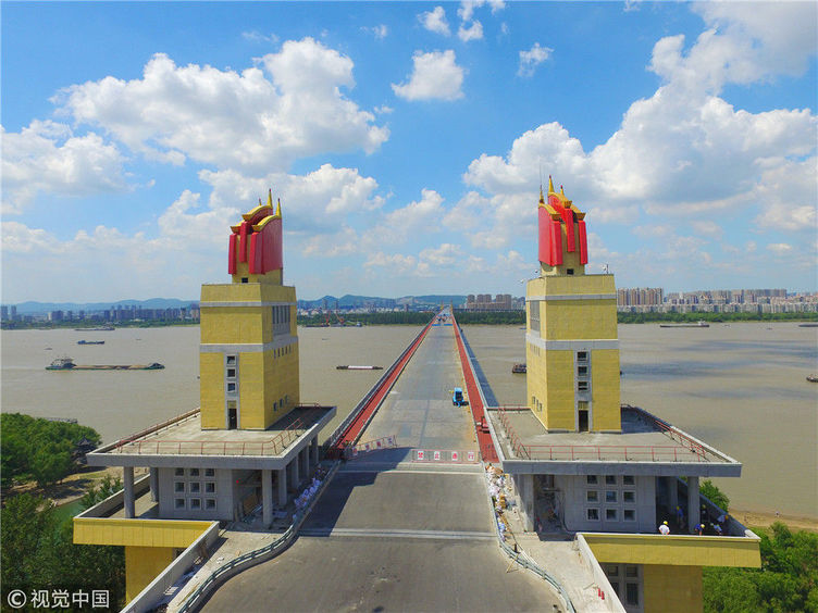 2018年9月9日,經過一年多的封閉維修,南京長江大橋初露新顏,在藍天白云的映襯下顯得格外壯美。