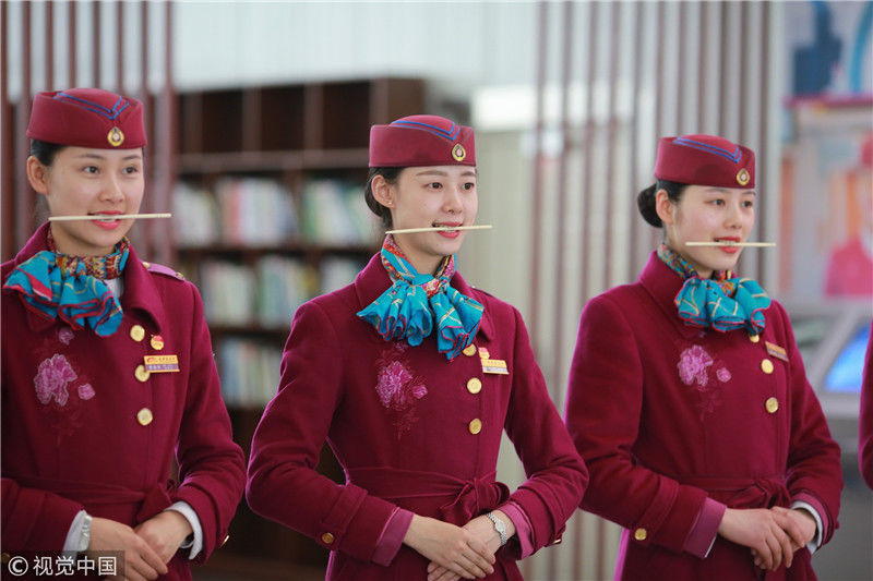 2018年12月27日,四川成都,為備戰即將開通的成雅鐵路,中國鐵路成都局集團有限公司成都客運段動車二隊對成雅動車的乘務人員進行理論、形體、服務禮儀等內容的培訓。