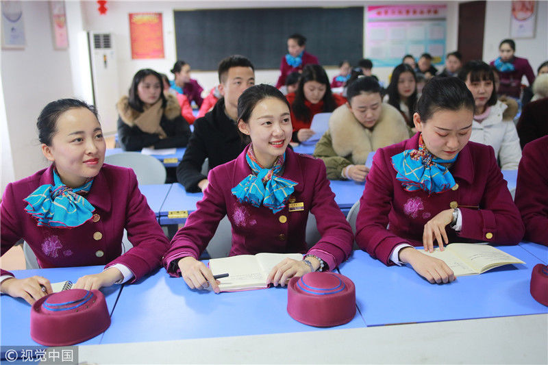 2018年12月27日,四川成都,為備戰即將開通的成雅鐵路,中國鐵路成都局集團有限公司成都客運段動車二隊對成雅動車的乘務人員進行理論、形體、服務禮儀等內容的培訓。