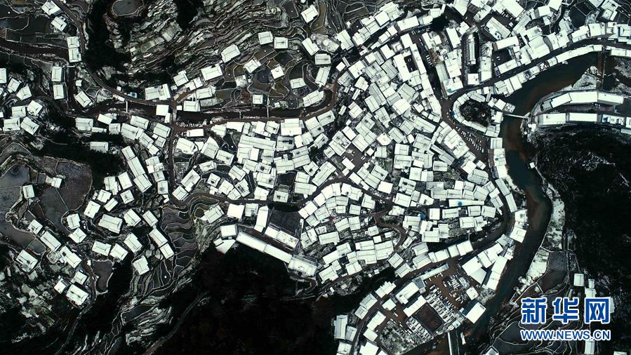 這是廣西融水苗族自治縣山區景色(2019年1月1日無人機拍攝)。近日,受冷空氣影響,廣西融水苗族自治縣持續低溫并伴有降水。新華社記者 黃孝邦 攝