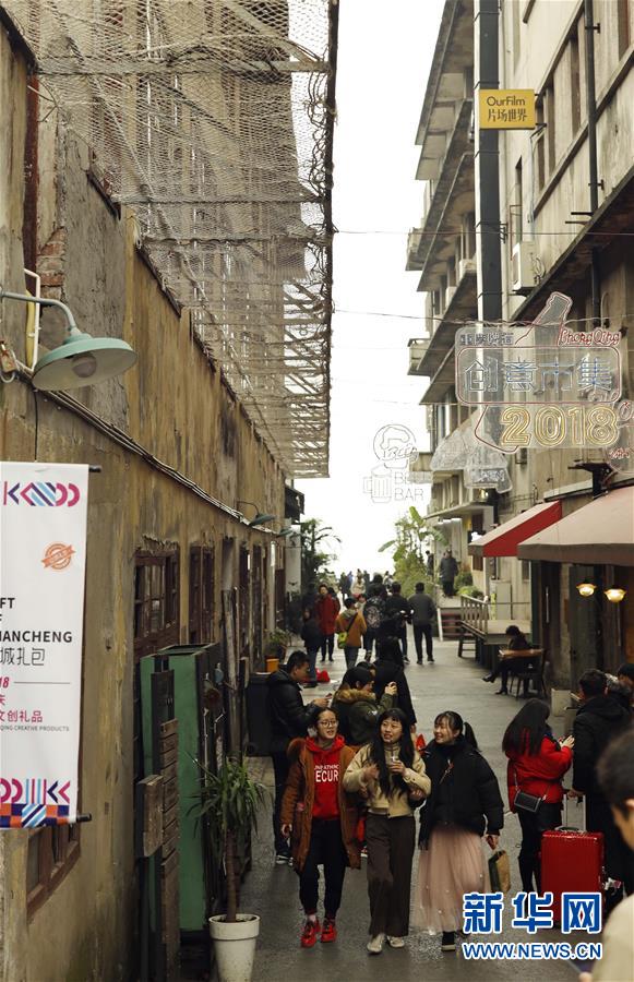 1月1日,游客們在重慶鵝嶺二廠文藝街區內游覽。