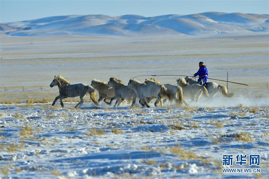 1月8日,牧民進行套馬表演。 時下正值草原冬季旅游旺季,內蒙古自治區西烏珠穆沁旗的牧民們在雪原上一展身手,為游客展現獨特的民族風情。 新華社記者 鄒予 攝