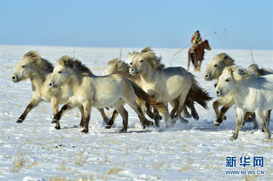 1月8日,牧民進行套馬表演。 時下正值草原冬季旅游旺季,內蒙古自治區西烏珠穆沁旗的牧民們在雪原上一展身手,為游客展現獨特的民族風情。 新華社記者 鄒予 攝