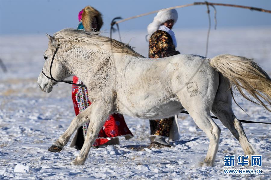 1月8日,牧民進行套馬表演。 時下正值草原冬季旅游旺季,內蒙古自治區西烏珠穆沁旗的牧民們在雪原上一展身手,為游客展現獨特的民族風情。 新華社記者 劉磊 攝
