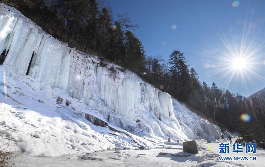 位于吉林省長白縣的十五道溝望天鵝風景區,屬長白山余脈。這里生態原始,古樹參天,瀑飛泉涌,怪石嶙峋,素有“北方九寨溝”的美譽。 冬日里,在形態各異的巖墻、巖柱間流淌的溪水因低溫凝固,仿若時間凍結,一切流動的美便以湍急之勢凝于石壁,形成了半冰半水、亦靜亦動的冰瀑景觀,盡顯大自然的鬼斧神工。 新華社記者張楠攝