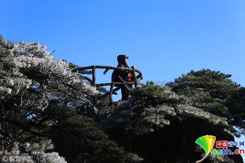 4月15日,安徽黃山出現了四月陽春罕見的霧凇奇觀。圖片作者:施廣德/視覺中國