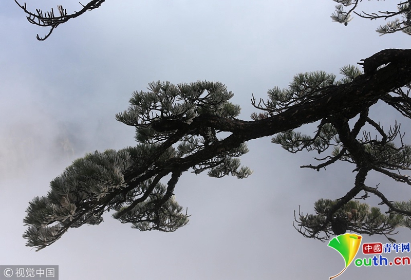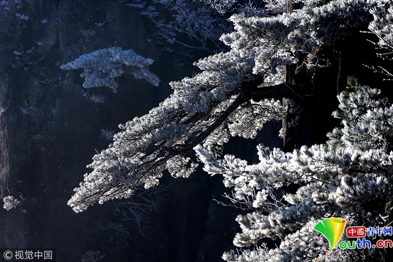 安徽黃山出現了四月陽春罕見的霧凇奇觀。