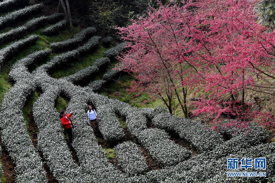 福建省連城縣賴源鄉黃宗村海拔1000余米的高山茶園面積約千畝,園內套種一萬余棵櫻花樹。寒冬時節,綻放的櫻花與綠色茶園相互映襯,宛如一幅田園畫卷。
