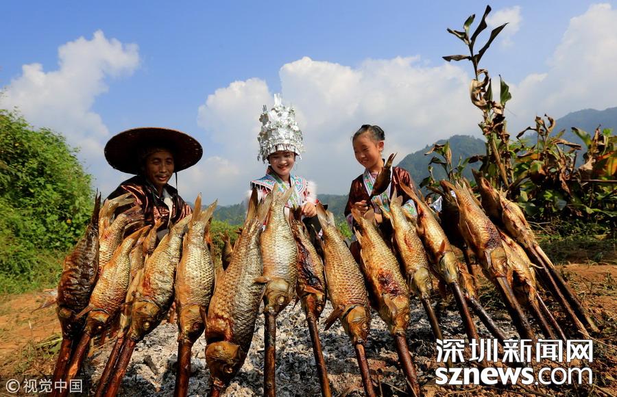 廣西柳州市融水縣山區有插秧時節放養鯉魚苗的習俗,金秋時節稻熟魚肥,收稻燒魚成為別致一景。