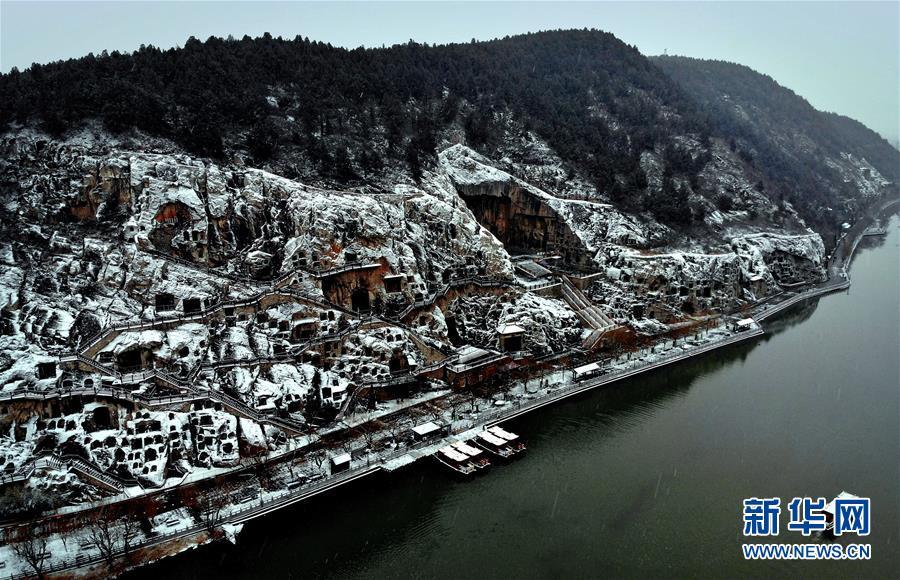 當(dāng)日,雪后的河南洛陽(yáng)龍門(mén)石窟景區(qū)銀裝素裹,一幅天然的水墨畫(huà)卷徐徐展開(kāi)。