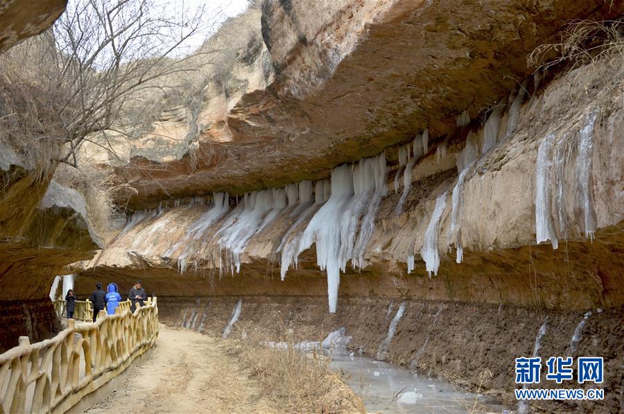 黑老鍋景區位于甘肅省慶陽市顯勝鄉,峽谷長千余米,每年冬季泉水結成冰瀑,景色壯觀,吸引眾多游客前來游玩。 新華社記者李笑攝