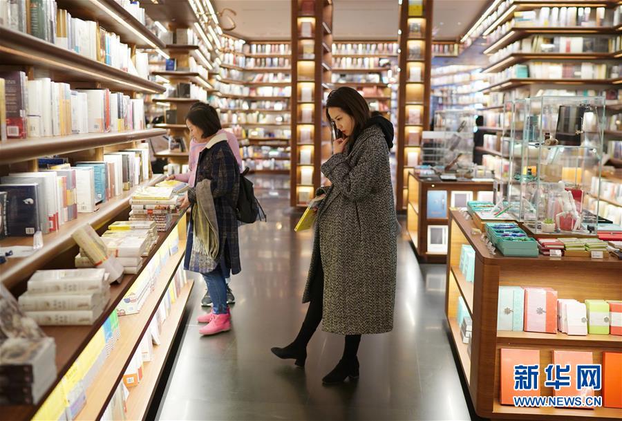 1月14日,讀者在西安高新區一家大型書店內選購書籍。