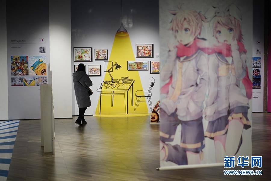 1月14日,一名讀者在西安市未央區一家書城的亞洲插畫展覽區參觀。